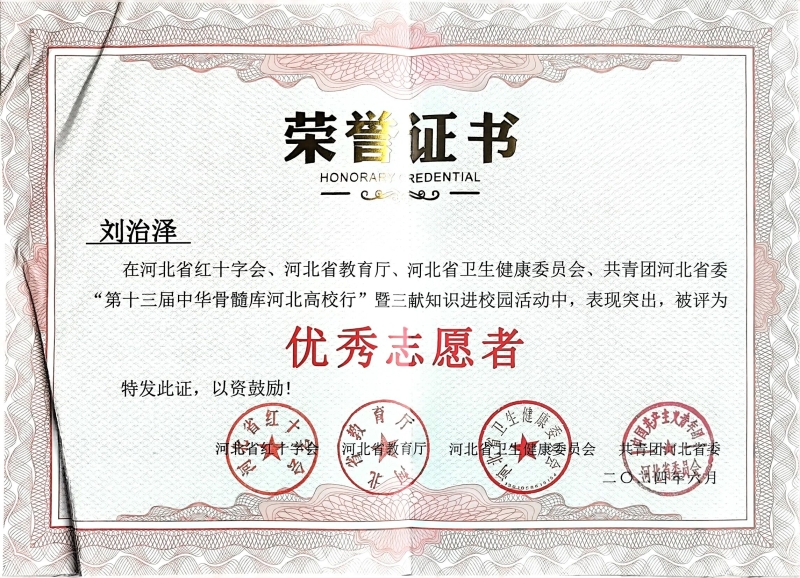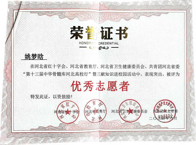 “张家口市青年志愿者优秀个人”称号