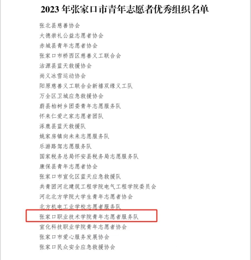 近日,河北省青年志愿者协会团体(个人)会员人选评定,经广泛推荐、充分酝酿、逐级审核公示,张家口职业技术学院校青年志愿服务队凭借在志愿服务领域的卓越表现脱颖而出,成功入选河北省青年志愿者协会团体会员。