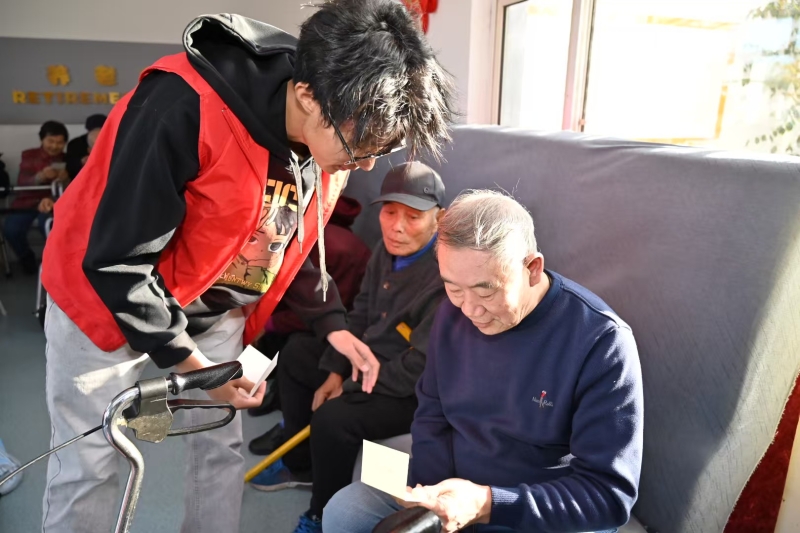 活动当日,志愿者们抵达养老中心后,首先向老人们献上饱含心意的手工贺卡,随后与老人们促膝长谈,耐心倾听过往经历与生活趣事,细致了解其生活需求与健康状况;同时有序开展卫生清洁志愿服务,为老人们营造整洁舒适的生活空间。