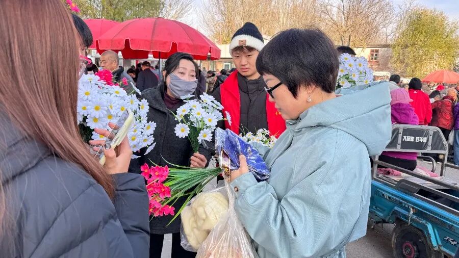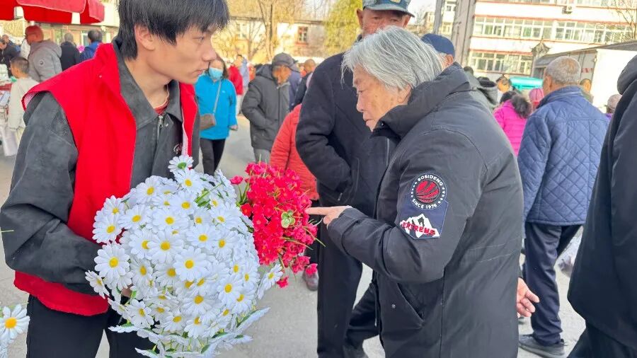 活动伊始,学生志愿者们从学校出发前往东宁街社区,参与本次手工花卉义卖活动。大家迅速明确分工、各司其职:部分志愿者负责布置义卖摊位,细致整理、有序摆放各类花卉,还以热情耐心的态度向购买者介绍手工花卉特色,协助完成花卉搭配;另一部分志愿者则主动维持现场秩序,引导居民有序参与选购,并认真协助社区完成购买登记与收款工作,切实保障义卖活动顺利、高效推进。志愿者们忙碌的身影与绽放的鲜花相映成趣,成为社区里一道格外亮丽的风景线。