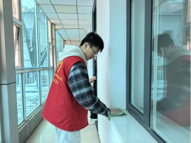 3月5日上午,我院受邀参加桥西区“2026年学雷锋活动月启动仪式”。活动期间,我院青年志愿者以高度负责的态度主动担当、积极作为,有序参与现场秩序维护、场地保障、物资分发等志愿服务工作,以实际行动展现青年风采。同时,志愿者们深入社区开展入户帮扶,为居民发放生活物资,主动帮助打扫居室卫生、整理桌椅、清洁家具,用暖心服务传递真情与温暖。